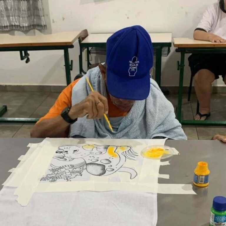 Realizamos uma linda atividade de pintura em tecido com nossos assistidos que participam do projeto EJA. Um momento de expressão artística, inclusão e desenvolvimento de habilidades que reforça o quanto a arte pode transformar e conectar!
